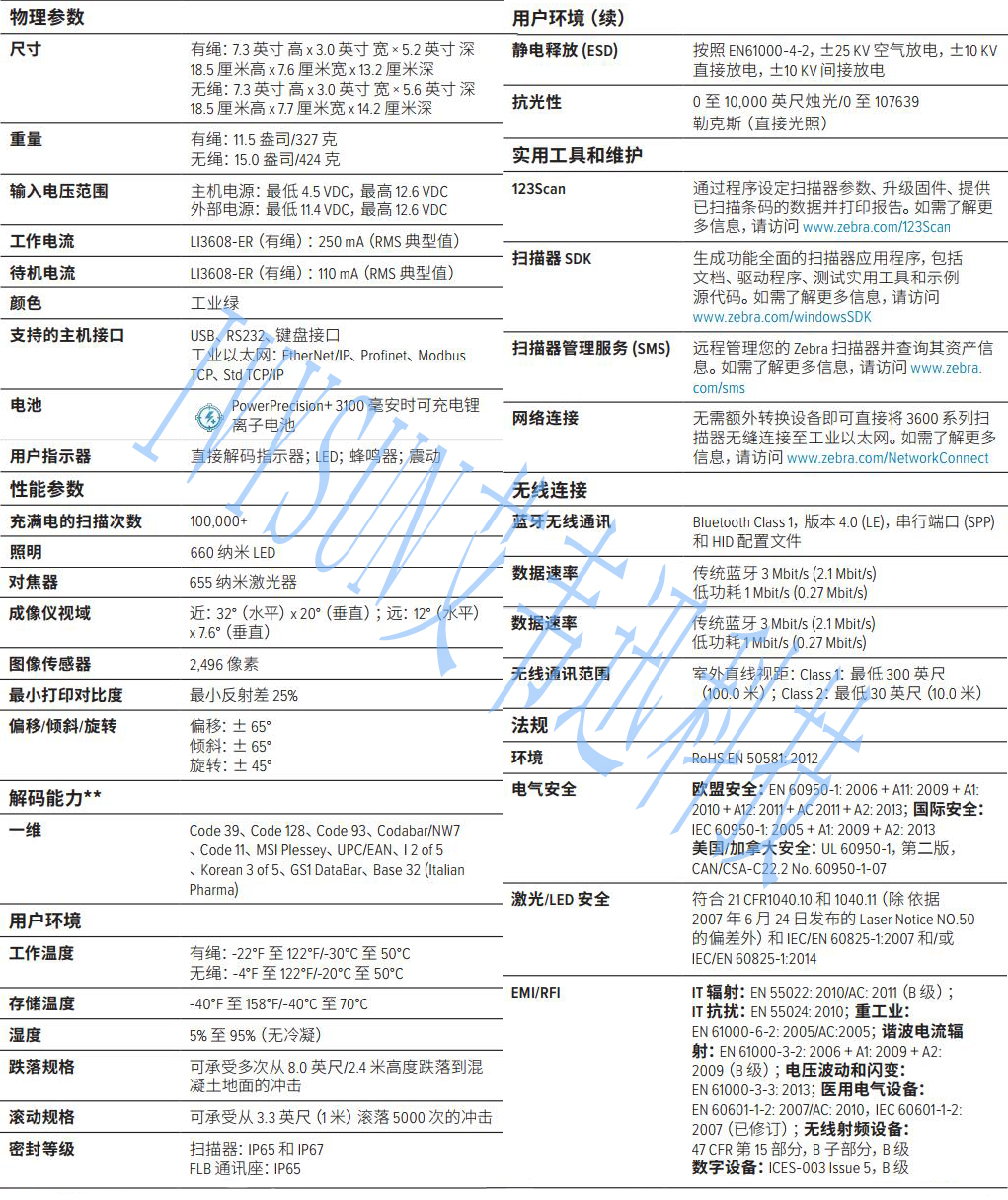 ????倉庫里的工作人員要在近處和遠處掃描數以千計的一維條碼,以確保訂單的準確性和準時交付。他們的工作效率取決于您為他們提供的掃描器的質量。現在,您可以為他們提供出色的斑馬無繩LI3678-ER掃描器——有著出眾的耐用設計、卓越的掃描性能、業界極佳的掃描范圍和出色的可管理性。這款線性成像儀幾乎可以在任何條件下快速采集顯示在屏幕上或打印在標簽上的任何一維條碼,掃描范圍比同類掃描器更大,涵蓋從2英寸/5.1厘米到56英尺/17.1米。耐用型設計十分堅固,是您在大多數嚴苛環境下的首選。LI3678-ER的部署和管理十分簡單,且耗時很短。說到無繩技術,LI3678-ER具有Zebra獨有功能,使其成為同類產品中的佼佼者。LI3678-ER具備強大性能,可更大限度提高運營中的員工工作效率和吞吐量。